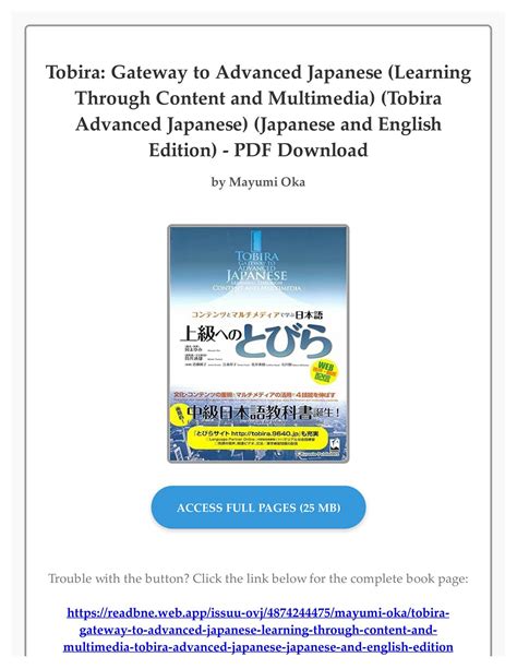 Download Tobira: Gateway to Advanced Japanese Learning Through Content and Multimedia PDF